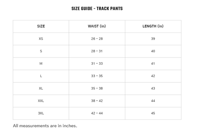 SIZE GUIDE - TRACK PANTS